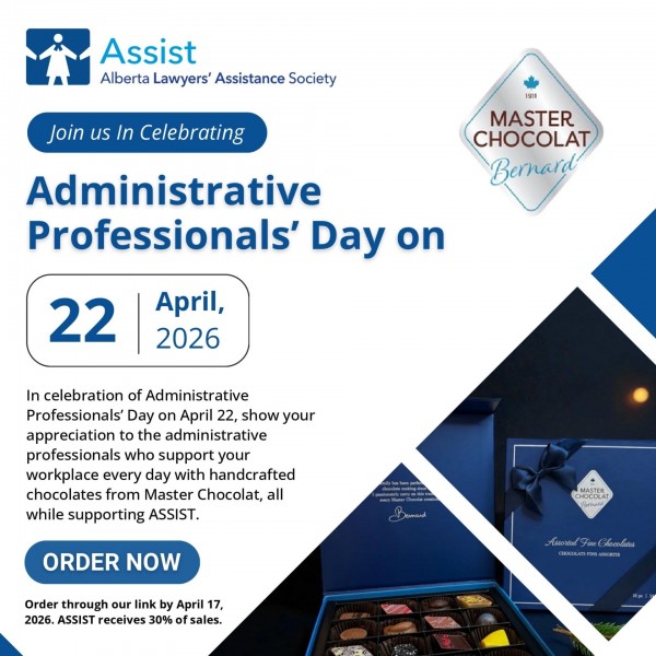 This year, Assist invites law firms and legal organizations to celebrate their staff while giving back to the legal community through a special partnership with Master Chocolat. By purchasing curated chocolate gift boxes for your team, you’re not only expressing appreciation in a meaningful (and delicious) way, you’re also making a difference. Assist will receive 30% of all sales, directly supporting our mental health and well-being programs for lawyers, articling students, law students, and their families.